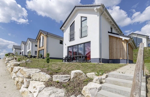 Villa an der Therme Obernsees is a child-friendly, modern resort located in Obernsees, 7 km from Mistelgau, Truppach, Germany. This vacation rental boasts a small garden with a lawn, and shared amenities include a children's playground with a slide, swing, and sandbox. It offers a reception area and central heating system within the complex. You can enjoy convenient amenities such as Internet Wi-Fi, parking, and an installment plan for your stay.