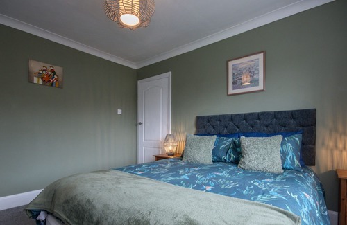 Bedroom Two contains a really comfortable king-size divan bed with four drawers, wardrobe rail & privacy screen, bedside cabinets with bedside lights, full-length mirror & USB charging points for your devices. A really quiet room with views over the back garden and houses beyond.
