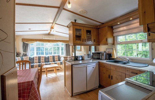 Charming, comfortable, and romantic mobile home located in a peaceful environment surrounded by woods and meadows. Perfect for a nature getaway, it features a large covered terrace of 27 m², ideal for relaxing and enjoying the outdoors.