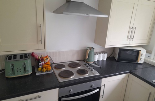 As well as the complimentary teas, and coffees, you will be greeted with bread, milk and a few snacks to make a cuppa and unwind after a long journey. The fully equipped kitchen has a fridge, a hob, an oven, a kettle, a freezer and a microwave. Oh, and a washing machine and ironing facilities, too!