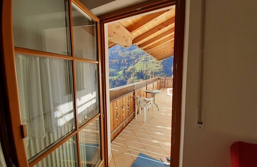 In the fraction Schweinsteg of St. Leonhard in Passeier, 600 m above sea level, this beautiful holiday flat is located on the 3rd floor of the idyllic Strickerhof. The cosy apartment consists of a living room with a sofa bed for 2 people, a kitchenette, a bedroom as well as one bathroom and can therefore accommodate 4 people. Amenities also include cable TV. A baby cot and a high chair are available upon request. The outdoor area boasts a covered and furnished balcony with a fantastic view of the mountains and the valley as well as a garden which you can share with guests of other holiday apartments. There is a swing and a trampoline available. The view of green meadows and snow-capped peaks will allow you to relax after long trekking tours and hiking excursions. You will find a selection of shops, restaurants, bars and cafés within 6 km (an 11-minute drive). The nearest village is St. Martin in Passeier, 10 km down the valley. The village of Saltaus is about 2 km and Merano about 12 km away. A bicycle rental and a bus stop are about 2 km from the property.