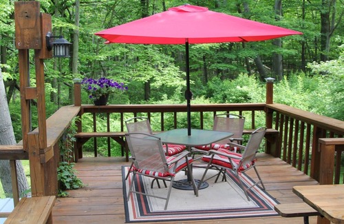 Nestled in a wooded lot, the 'Cottage in the Glenn' offers private access to the beautiful Lake Michigan beach.