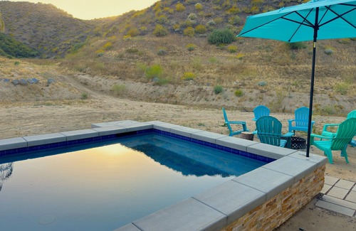This 2-bedroom apartment on 27 acres is a fun hideaway near Temecula's wine region. It features a generous living space, a large hot tub, a full kitchen, a hiking trail, fire pit, modern amenities, and comfortable bedrooms. The backyard faces a scenic canyon that can be viewed from the extra large hot tub or the cozy fire pit. There is a 45 min trail within the property for hikes. 15 mins to Galway Downs. 15 mins to Cahuilla Motocross. 10 mins to Emerald Creek Winery. 16 mins Hawk Watch Winery.