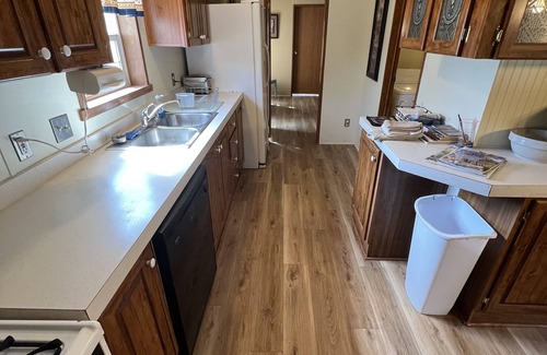 This is a 3BR/2B mobile home near Kaw Lake, Oklahoma. Sleeps 8-10. Master bedroom has 1 king size bed, Bedroom 2 has 1 full size bed, bedroom 3 has 2 bunk beds with full size beds on bottom & twin beds on top. Fully stocked kitchen with dishes, stove, microwave & dishwasher. Washer & dryer on site. 2 TV's with satellite TV. Deck on front of house so you can sit outside with a roof over your head and enjoy the country air. Also has a BBQ grill if you want to grill dinner. Located just 2 miles from Kaw City, Oklahoma on highway 11 on 1 acre of land. Nice quiet country neighborhood. Dogs are welcome with pet deposit. Minimum 2 night stay. 2 miles from Kaw Lake, 10 miles from Ponca City, OK. 30 miles from The Pioneer Woman's Mercantile. At the present time there is no WIFI.