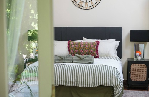 Escape to Wisteria Lodge, a stylish countryside retreat on our 25-acre smallholding near Canterbury. With a bright open-plan king bedroom, cosy single, and sofa bed, it’s ideal for couples or small families. Wander through our gardens with orchards, meadows, and ponds, dine under the wisteria, enjoy the wood-fired pizza oven, or gather around the fire pit. Guests love the birdsong, fresh eggs, croquet and putting green, and the thoughtful touches for families and pets.