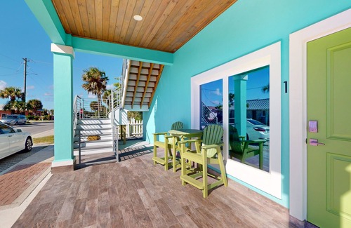 Indulge in seaside serenity at this beautifully constructed, first-floor vacation getaway! Located in the heart of downtown Flagler Beach on the west side of iconic A1A, this stylish suite leaves you just steps from the beach, the boardwalk, restaurants, pubs, galleries, gift shops, a nature trail, and a farmer's market. The boardwalk is just 100 feet away, which gives you multiple access to the beach along the ocean and a six-mile stretch of picturesque water views. Grab your morning coffee and watch the spectacular sunrises, the moods of the ocean waves, and unique cloud formations framing the limitless horizon. Teeming with local establishments to explore, it has that small-town charm you're sure to love blended with Florida's best attractions nearby. A short drive can take you to Daytona and St. Augustine as well, granting limitless options during your stay.