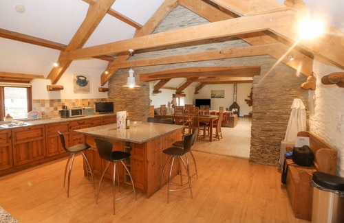 The living areas in this home consist of an open-plan kitchen, dining area and sitting area with an electric oven, induction hob, microwave, fridge/freezer, dishwasher, coffee machine, woodburning stove, Smart TV with DVD player, and a selection of books, games and DVDs. The bedrooms rest on the lower-ground-floor and consist of two king-size, one with TV and en-suite, and a twin, serviced by a lower-ground-floor bathroom. Outside there is a rear, sloped garden with lawn, patio and furniture, and a private driveway. One well-behaved dog welcomed, but sorry, no smoking. WiFi, fuel, power, bed linen and towels are all included in the price, along with a highchair, travel cot and stairgate. You'll find a shop in 2.5 miles, a pub in 0.1 miles, and River Dart in 0.4 miles. Enjoy a rural escape to Devon at Cowslip Barn. Note: There are steps to the interior and exterior of the home; please take care. Note: This property has a Good Housekeeping bond of £300.