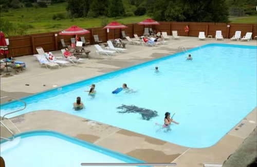 Yes, this Davis cabin has a swimming pool. Check the Facility Overview section for details about the pool and other available facilities.