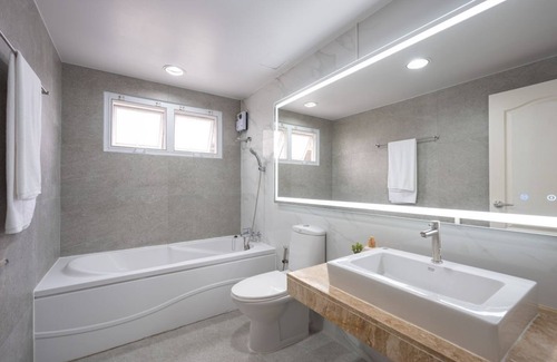 Nestled in Bangkok, this delightful condo features 2 welcoming bedrooms with queen beds and 2 enjoyable bathrooms complete with a jetted bathtub. Guests can take advantage of amenities like AC, WiFi, and a fitness room during their stay. With convenient access to a washing machine and hair dryer, your vacation will be nothing short of excellent. We hope you enjoy what our place and Bangkok has to offer. This luxurious condo is located in the heart of Watthana district, Bangkok, on To Sak Alley. It offers a serene and peaceful environment while maintaining easy access to transportation and nearby amenities. This 2-bedroom, 2-bathroom unit has been meticulously designed to cater to modern lifestyles, making it an ideal choice for both Thai residents and expatriates seeking a long-term stay or simply looking to elevate their living experience.