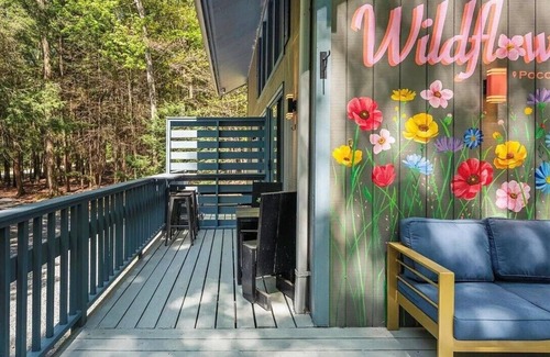 Unwind in the Pocono mountains at the lovely Wildflower cabin. With 3 bedrooms including 1 king bed and 2 queen beds, along with 2 bathrooms featuring a soaking bathtub, guests will feel right at home. The spacious living room with fireplace is the perfect place to gather with family, friends or a significant other for a romantic getaway. The additional loft space offers a game room with pool, ice hockey and even a sofa bed for additional guests.Enjoy this thoughtfully curated cabin in the woods with all that nature has to offer through the seasons. Soak in the hot tub or enjoy a meal on the deck with an outdoor bonfire area perfect for roasting marshmallows. Let us host your next getaway at our cabin! Township Registration #- 021252