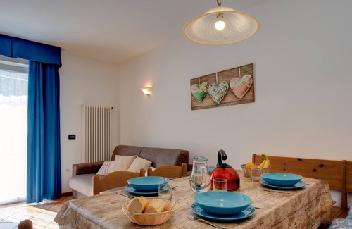 The charming apartment Ai Bonetei 3 is situated in Dimaro, in the beautiful Trentino region, and is ideal for skiing or hiking holidays. The holiday home consists of a living room with a double bed, a well-equipped kitchen with a dishwasher, 2 bedrooms (one with a bunk bed) as well as one bathroom and can therefore accommodate 6 people. Additional amenities include Wi-Fi, satellite and cable television, and upon request a baby cot, a child's bed and a highchair. The spacious shared outdoor area impresses with a big garden with a barbecue and an open terrace, where you can enjoy the evenings in a stunning panorama. Guests can make use of the sauna for an additional fee. A small above-ground pool in the garden with cold water for children is accessible in summer. The center of the village with supermarkets, restaurants, cafés and bus stations is only a 9-minute walk (650 m) from the apartment. The city of Bozen, the capital of South Tyrol (Bolzano) is located a 1.5 hour-drive (87 km) northeast of Dimaro, and the city of Trento is about 60km (1-hour drive) away. The closest ski lift, Folgàrida - Marilléva, is only an 8-minute drive (5.1 km) away and will take you to one of the most spectacular skiing regions in the Italian Alps, the ski area of Madonna di Campiglio - Val di Sole - Val Rendena, with 156 km of slopes. The Natural Park of Adamello Brenta is only 200m (4-minute walk) away.