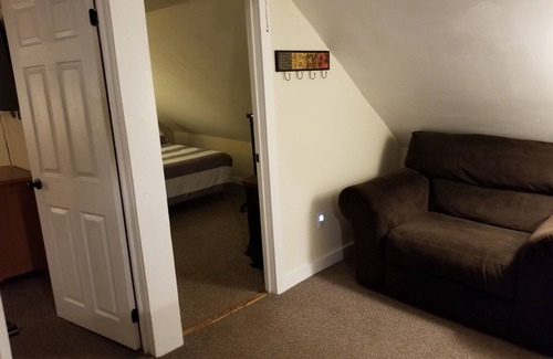 I lived in the apartment for a while renovating and it is very cozy. Please no more then two cars and no more then 3-4 people as this is a small upstairs unit. The owner/manager lives on site in a separate unit.