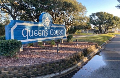 Beach condo 1-bed, 1-bath vacation rental at Queens Court with ocean view. This well equipped condo is on the top floor of a 3 story building (nobody walking on your head!), offering full kitchen, private balcony, comfortable living space, and new flooring throughout. Amenities include outdoor swimming pool, sport court, bike trails, walking/biking distance to great restaurants, grocery stores, coffee shops, and a 1 mile walk on the beach to Bogue Inlet Fishing Pier. Has an elevator!