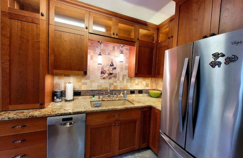 Couples or young siblings will also enjoy a walk-in shower with dual rain shower heads in the updated bathroom. Those who enjoy cooking will love the fully equipped kitchen, also updated with granite counters and new appliances, and there is ample space for six persons to dine in the attached but separate dining room. Original features of the home include wood floors throughout and cove ceilings. The art and decor is inspired by Montana's wildlife and rustic living.