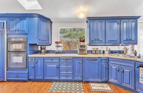 Escape to this serene 3-bedroom, 2-bath cabin nestled on 10 private acres in beautiful Pilot Hill, California. Surrounded by nature, this peaceful retreat offers the perfect blend of comfort and tranquility, ideal for families, friends, or a romantic getaway. Unwind in the spacious living areas with a cozy fireplace and TV, or prepare meals in the fully equipped kitchen with modern appliances. Stay connected with high-speed WiFi or take advantage of the in-person check-in for a seamless arrival. The home features air conditioning, a washing machine, and access to a laundromat, ensuring convenience for long-term stays. Step outside and explore the scenic surroundings, or relax on the deck and take in breathtaking views. With free parking, this retreat is pet-friendly and welcomes children and infants, making it a perfect getaway for all.