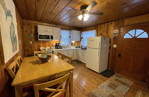 Just a short walk to Higgins Lake. Enjoy this clean and comfortable year round newly remodeled cabin with heat and air. This cabin is equipped with everything you will need . 1st room has new comfy king size bed . 2nd room has new queen bed with HDTV w Roku box. Just a short walk to Higgins lake Maplehurst road end where you can launch your boat and relax in the sun on the beach. Higgins lake has acres of crystal clear water where you can enjoy swimming and boating or any other water activity you enjoy.