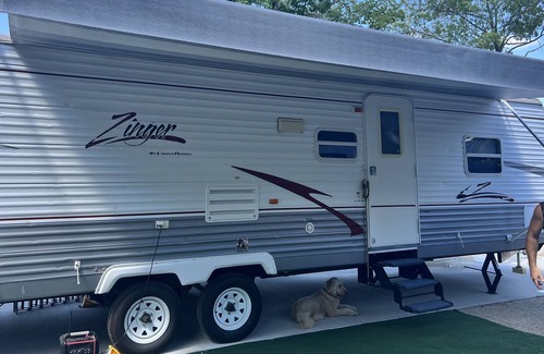 Relaxing getaway at the Lake of the Ozark’s. Enjoy Coconuts water park, great food, musical entertainment, outdoor games on the patio, fitness center, laundry facilities with pool table, skee-ball, and arcade games. Lake view fitness center, Spa like shower facilities, separate bathroom facilities. PET friendly!! Dog park coming soon. So much to do or sit back and relax at our COZY Camper where you can relax in the outdoor living area and grill your favorite food! Dog lead, leash and bowls are provided for your furry friend. All linens, towels, pot, pans and cooking utensils provided. Keurig and pods provided for your morning cup of Joe!!! Enjoy!!