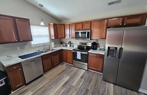 A blend of comfort and style greets you as you enter our newly remodeled ranch home. We have worked hard to create a home away from home feeling for our guests. The open-concept floor design allows room for many guests. Everyone in your group will have room to mingle and relax.