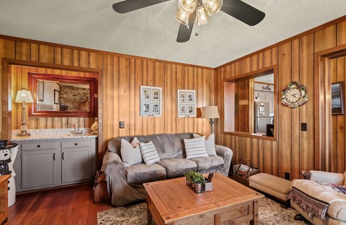 It immediately feels like home, with a comfy couch and recliner, coffee table, a cozy fireplace to gather around, and a smart TV with streaming and cable for movie nights. Relax in the mountain air while spending precious moments with your friends and family.