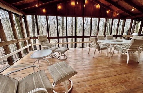 Cozy & Eclectic Mountain Escape With Amenities Access for The Woods and PubGolf is located in The Woods. Cozy & Eclectic Mountain Escape With Amenities Access for The Woods and PubGolf provides accommodation, featuring Sports/Activities, Security/Safety, Bedding/Linens, among other amenities. This Cabin features Sports/Activities, Security/Safety, Bedding/Linens, to make your stay a comfortable one.
