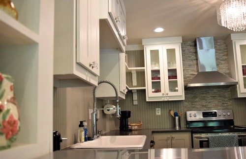 Modern farmhouse with amenities, full kitchen, parking, porch and owners within minutes.