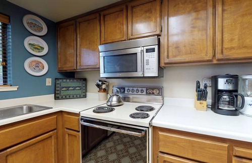 This chalet-style vacation home is located a short distance from the lake and surrounded by lots of trees - it's like being in a treehouse! During your stay, you'll have access to this gated community's shared pool, three beaches, country club, and golf course. This two-bedroom, two-bath home is very appealing for adults and children with lots to explore in the surrounding area. Entertainment amenities include a Smart TV, cable TV, a CD player, DVD player, games, and internet access. Plus, you can bring your lovely dog with you!