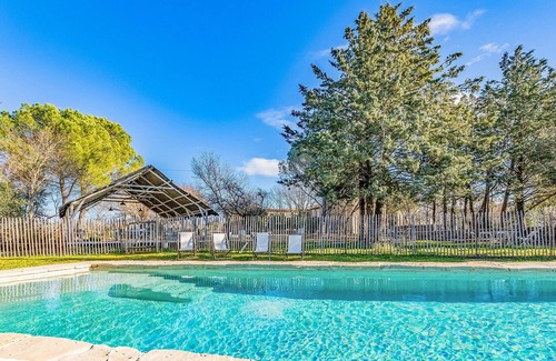 Yes, this Rouet house has a swimming pool. Check the Facility Overview section for details about the pool and other available facilities.