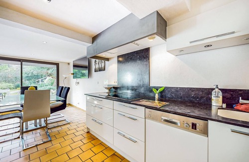 The cozy house awaits you on an idyllic, overgrown plot and offers the best conditions for a varied break. Round off a wonderful day's vacation with a meal together and make yourself comfortable on the sofa with a view of the garden, make plans for the coming days and enjoy your time together.
