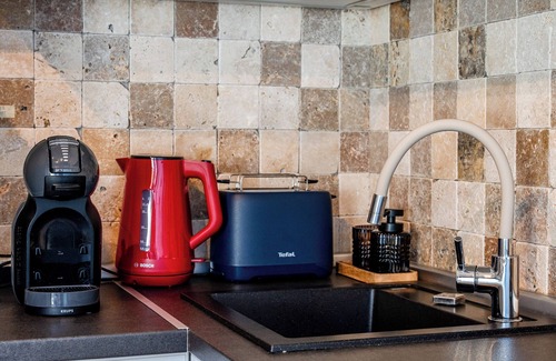 The open-space kitchen is fully equipped and ideal for cooking enthusiasts, as it provides all the facilities and appliances necessary for any recipe. You can choose from a divers range of spices, at your disposal.
