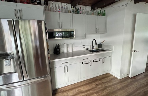 Our home offers a quaint 1 bedroom, 1 bathroom living space. The private bedroom has a king-size bed with a large connected bathroom. The bedroom is equipped with Air Conditioning and a ceiling fan. Added bonus of an additional King Sofa Bed in the living room (it's even comfortable, no obnoxious bar in your back, we promise!). Let us know if you want to use the Sofa Bed, and we'll have it set up for you before you arrive. Also available upon request are 2 twin size floor cushions, great for kids to sleep on.