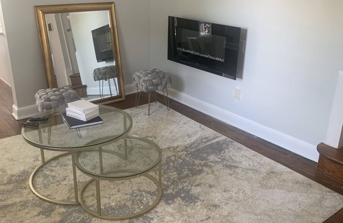 Cozy Love Home in a quiet DC area. Comfortable sized yard with beautiful landscaping and well lit yard. The furnished porch is great for morning coffee and lots of shade. Elegant living room with electric fireplace. This home has plenty of natural light. Well lit kitchen with bar stools and counter top ;great light in this area for working on laptop. Dining table with bench sits 6 people comfortably.55inch smart TV is mounted on the wall that covers the dining and kitchen area. Large bedroom with wall mounted Smart TV, two large closets with plenty of space. 2nd bedroom cozy with daybed that sleeps 2. Book shelves on the wall, TV mounted on wall and great closet space. Beautiful Standard bathroom with tub/shower. The basement is unfinished but very clean . The basement is ideal for storage space and washing The basement is equipped with a washer/dryer, iron and ironing board; The following items are available to share with guests during the stay. All items must be kept well and returned to the basement once finished using: tint (easy set up) picnic table, 7 lawn chairs, cooler, charcoal for the grill. Large well kept backyard!