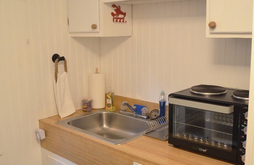 There is no oven or stove but there is a one burner hot plate and microwave.