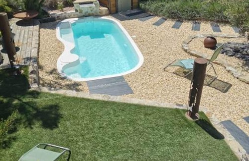With all their heart, they renovated their [hidden] m² barn, in a Green and Steel style, into a private loft with a cozy and refined decor. The Provençal garden inspires plenitude, its decor enhanced with glass and steel sculptures, the fish pond, the heated swimming pool with counter-current (6 x [hidden] m), a beautiful spa for 6 people, a true relaxation space.