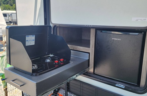 Escape to this charming four season recreational vehicle in picturesque Mooresburg at Cherokee Lake. This nice property offers a cozy bedroom with a queen bed, ensuring a serene and comfortable stay for guests. Outside kitchen including a mini fridge, 2 burner stove and Blackstone griddle. Fully equipped kitchen inside and theatre seats. The bathroom is equipped with a hair dryer, and shower, providing all the necessary amenities. With features like laundry (on site), AC, heating with electric fireplace, and WiFi, your stay will be convenient and enjoyable. Whether you're exploring the beautiful surroundings or simply relaxing in this lovely RV, we'll be available to answer any questions while you stay at our place. Bring your kayak, jet ski or boat and enjoy a break away from the hustle and bustle. 30 Minutes from Sevierville
