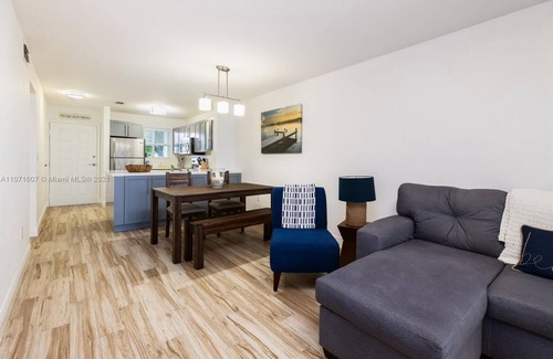 Escape to paradise in this inviting 2-bedroom, 2-bathroom Key Largo condo. Enjoy breathtaking pool views from your first-floor oasis. The master bedroom features a king-sized bed and an en-suite bathroom, while the second bedroom offers a comfortable double bunk bed + trundle. Relax and unwind with three smart TVs, or cook up a delicious meal in the fully equipped kitchen. Take a refreshing dip in the pool, just steps from your front door. With complimentary Wi-Fi, in-unit laundry, and two dedicated parking spaces, this condo offers the perfect blend of comfort and convenience. Plenty of guest parking is available for added ease.