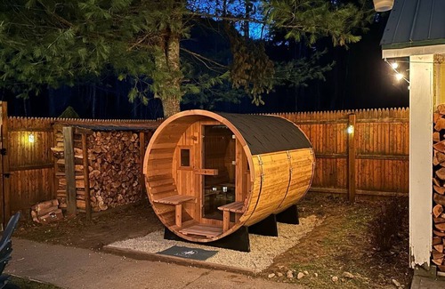 For your entertainment, the property features a smart TV, board games, free Wi-Fi, a hot tub, and an outdoor sauna, ensuring you stay connected and entertained throughout your stay. The enhanced cleaning practices and provided linens and towels ensure a comfortable and worry-free experience. Safety features such as smoke detectors, a carbon monoxide detector, and a fire extinguisher are also in place for your peace of mind.