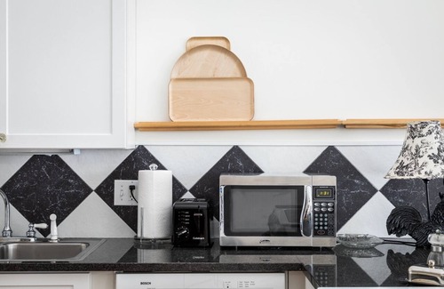 Crystal Comfort Suite 1 is aptly named for its comfortable furnishings and plentiful amenities. The 600 square foot studio with a Village view offers plenty of space to whip up something to eat in the spacious kitchen or just relax with a favorite local wine or beer and a good book or TV program on the sofa and chair.