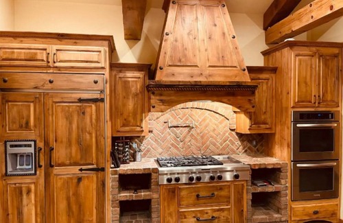 Relax in a PET FRIENDLY Ranch property after an adventurous day in your private Theatre Room with 200” projector screen, surround system and voice activated Fire TV Cube/Alexa 4K Ultra HD and wireless streaming and comfy recliner seats. PRIME TV, ESPN +, DISNEY + and HULU. School your friends in a game of billiards, darts and poker. Invigorate your senses & relax your muscles in the cold immersion tank and hot tub. Roast s'mores over the natural rock fireplace, or cook some dinner for the group using the 36” griddle & Air Fryer, and custom kitchen w/ brick accents, built-in appliances and massive leather granite island! Most kitchen tools and utensils are provided.