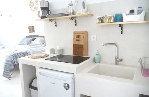 The studio is made up of a room with a sleeping area: 1 very large double bed (King Size: 200x200).