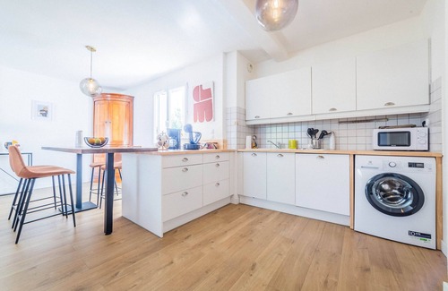 Let yourself be charmed by this 70m2 apartment in the heart of Brive. This carefully decorated accommodation offers all the necessary comfort to enjoy a peaceful stay. 15 minutes from the covered market and 15 minutes walk from the SNCF train station, it is ideally located to discover Brive and its surroundings. The apartment has two bedrooms, a fully equipped kitchen and 1 parking space. It is ideal for a group of 4 people. Also included in this accommodation: