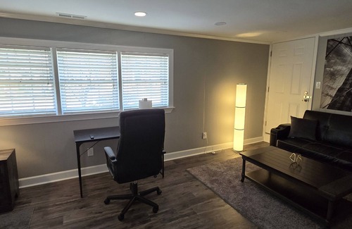 Prime location! Comfy newly renovated midtown studio in the North Hills area. Enjoy serene walks and nature at the best location to move around the city. Business travelers and families are welcome! Nice and bright, feels like home away from home. Enjoy a stylish experience at this centrally-located place minutes from malls, hospitals & downtown Raleigh. Great for longer stays. Washer & Dyer, 55" HDTV, AT&T fiber, Equipped Kitchen, and comfy beds.