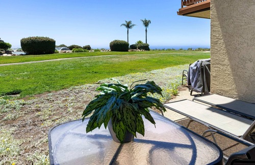 Amazing Ocean Views of Monterey Bay beyond the gorgeous lawns & fountains that greet you off of the patio of this beautiful Seascape Resort fully remodeled Luxury Spa Suite. Spend your days playing on the beach & evenings soaking in your in-room spa tub with a fireplace flickering in the background. Leave the slider open & listen to the frogs sing! Allergy friendly practices in place to make your stay even more enjoyable!