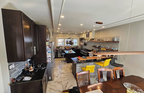 Located in 100 year old quiet neighborhood, Enjoy 2300 sq feet, 3 bedroom with extra in finished basement. With 4 queen beds and 3 bathrooms featuring amenities like a bidet and jetted bathtub, you will enjoy a legit holiday. This lovely property also includes a full laundry with unscented detergent, OxiClean, and bleach provided. AC, WiFi, and smart TV (bring your passwords) for your entertainment. The large front room welcomes you to an open area to relax. The kitchen is a Chef's Dream, 8 burner stove, fully equipped kitchen for 3 meals a day, seating for 8 at the main table and 4 at the bar; relax on the sofa in the kitchen between courses. The 1st floor TV room is super cozey, leather wrap around sofa, layed back leather electric recliner, and blankets to keep you warm while you doze. Basement has foosball table and air hockey because they are fun:-) Also 2 queen 6" memory foam mattresses with complete linen and blanket sets. All 3 bathrooms have custom tile work with soap/shampoo, and complete towels and washcloths. Driveway parking for one car, plenty of on street parking for others. All beds are made with 500tpi Egyptian Cotton sheets, soft comforter, blanket, and 4+ pillows. Sorry, no pets at this time.