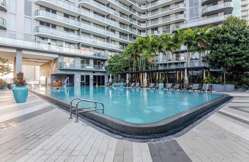 Escape to this brilliant designer condo in vibrant Miami. With 2 cozy bedrooms featuring a queen bed and a sofa bed, along with 2.5 modern bathrooms equipped with showers and hair dryers, this place is perfect for guests looking for comfort and convenience. Enjoy access to amenities like a fitness room, AC, iron, and hot tub/pool during your stay. A great place to call home base while you're away, we hope you enjoy your stay!