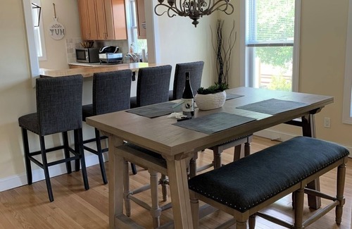 *the butcher block breakfast bar and kitchen island are NOT to be used as cutting boards. Cutting boards are provided in the lower cabinets in the kitchen. The blocks are poly coated and will resist stains/damage but please do be careful.