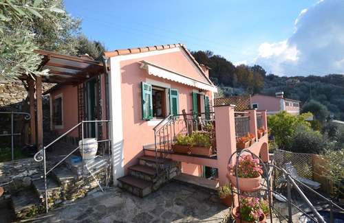 The romantic vacation home Bel Poggetto is surrounded by olive trees in a breathtaking panoramic and sunny position directly above the sea between Recco and Camogli, the famous seaside resorts in the Cinqueterre region.