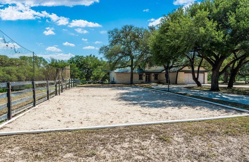 Featuring a sand volleyball court, sparkling swimming pool, and private river frontage, Barefoot is the ideal location for your memorable Concan vacation. Gather in the oversized living area, or hang out on the huge back deck under the gorgeous oak trees overlooking the beautiful Frio River.