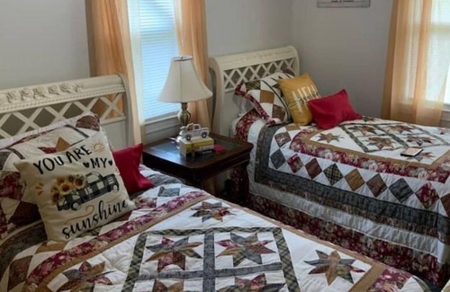 This 3-bedroom rambler has 1 king bed, 1 queen bed, 2 twin beds, 1 full bath, an open side/ back porch, kitchen, dining room, and a living room area. This house comfortably sleeps 6 people; will rent to a min. 2 or more guests who live more than 70 miles from the property.
