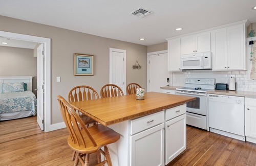 Dock Holiday has a wonderful fully equipped kitchen that includes cookware, Keurig Coffee Pot, pots, pans, and all the utensils you need to make your own meals or enjoy take-out food from any of the several nearby restaurants. A full-size washer and dryer, large closets, a flat-screen TV and Wi-Fi, high-speed Internet, and free parking are all included.