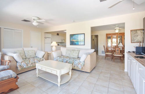 Lobster Lodge is the perfect retreat for your family getaway to the Sunshine State! This canal-front half-duplex features a 35-foot seawall dock. Relax out on the patios overlooking the canal or sit by the shared pool after taking a refreshing dip.